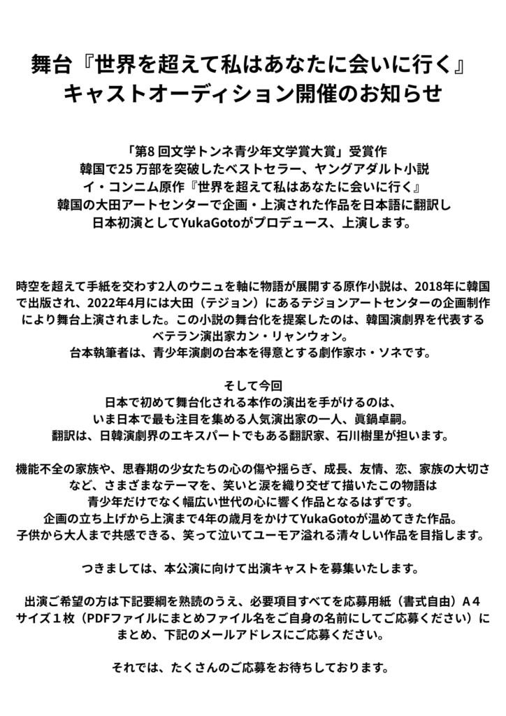 『世界を超えて私はあなたに会いに行く』出演者募集のお知らせ